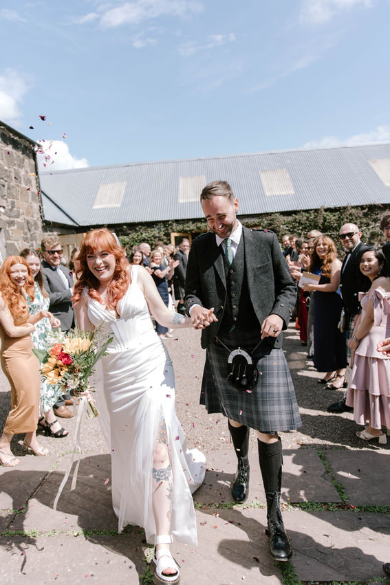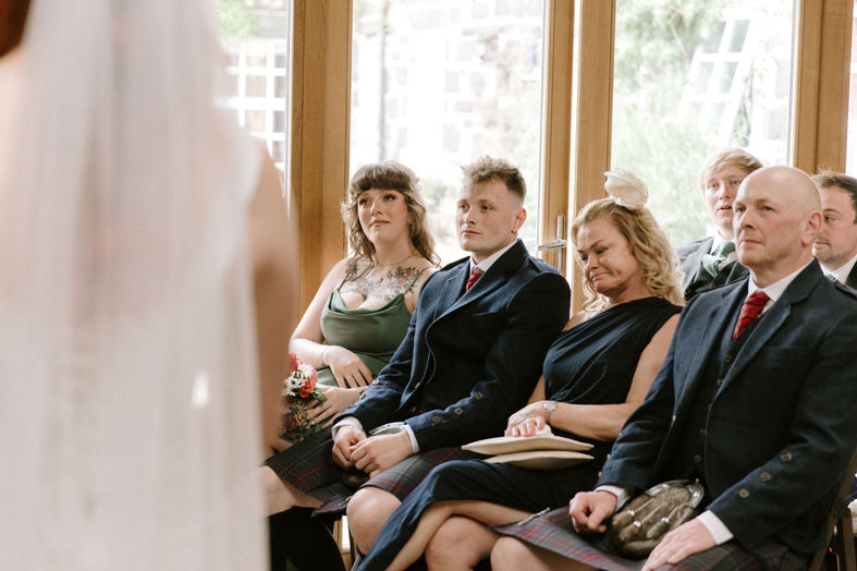 Flashforward to Comrie Croft, in June of 2025, on a typical temperamental Scottish summer's day, I pulled up to the venue to find the place already a buzz. Pulling together the last details of bouquets, table settings, and hair/make-up in full swing. What struck me was the community that Jed and Shaunee had around them - prepared to do anything for them to it perfect. Choosing those people, where you can, it's essential to choose the people who will make you feel the best, who will uplift you and keep the day positive and full of light. And that's exactly what this pair had done.