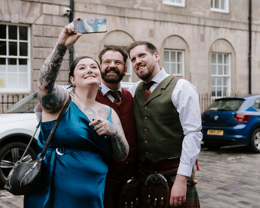 Family pictures were taken with affection and care, capturing the bond between loved ones. Edinburgh City Centre has beautiful cobbled streets, that were perfect for Group Portraits and became it's own character on the big day.